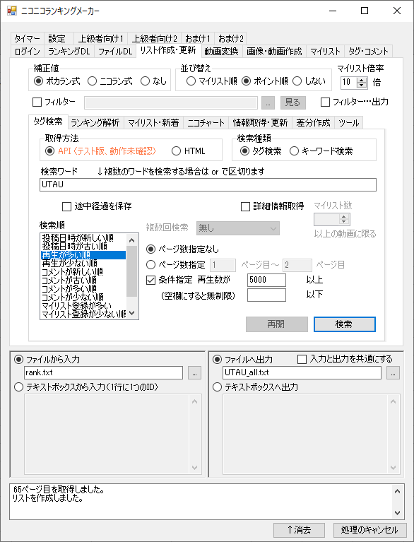 再生数5000以上を条件に「UTAU」でタグ検索し、